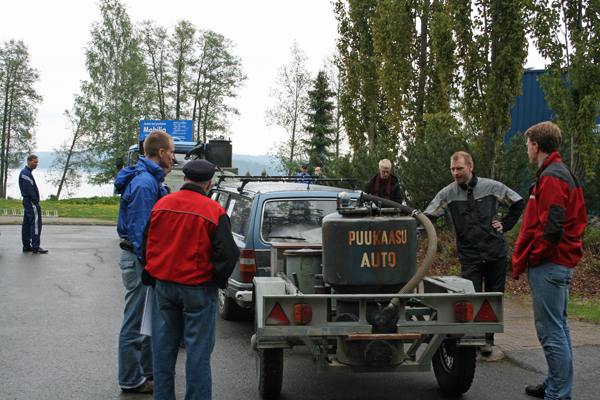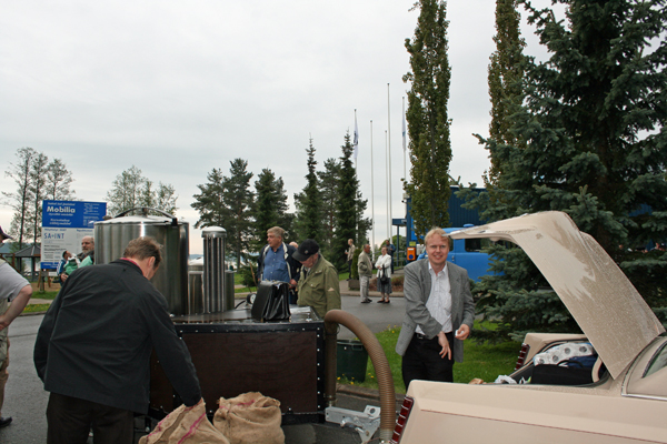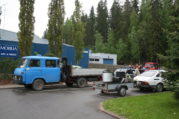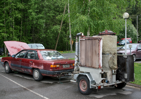 Mobilian parkkipaikalla oli puukaasuautoja aivan